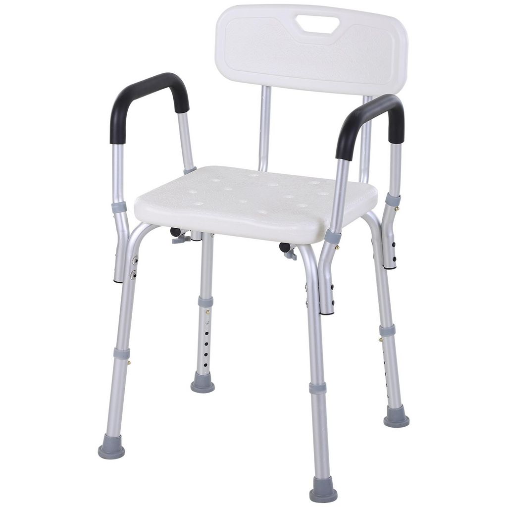 Chaise de douche siège de douche ergonomique hauteur réglable pieds antidérapants charge max. 135 Kg alu HDPE blanc