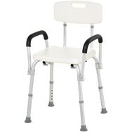 Chaise de douche siège de douche ergonomique hauteur réglable pieds antidérapants dossier accoudoirs amovibles charge max. 136 Kg alu HDPE blanc