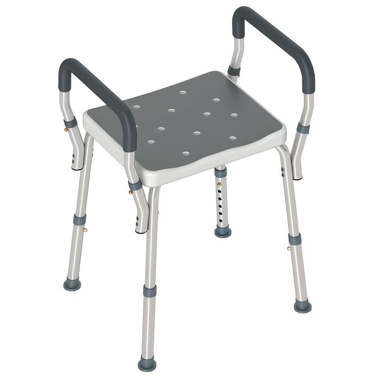 Chaise de douche tabouret de douche antidérapant - hauteur réglable, accoudoirs - alu HDPE gris
