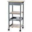 Chariot de service desserte de cuisine à roulettes 2 étagères + plateau amovible + tiroir bois de pin MDF gris chêne clair