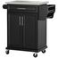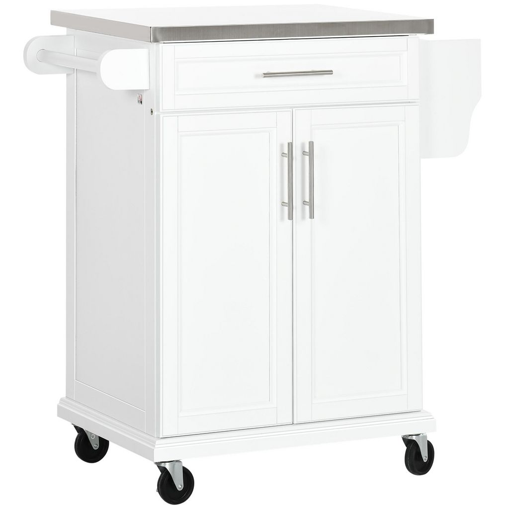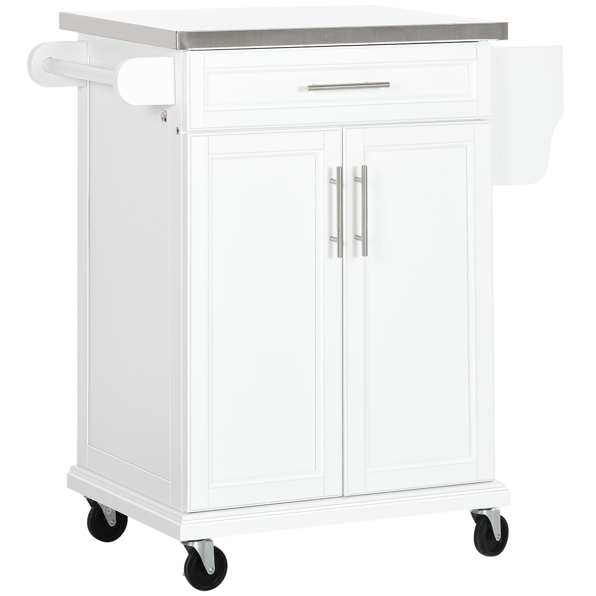 Chariot de service desserte de cuisine à roulettes îlot de cuisine - placard 2 portes, étagères, range couverts et condiments latéral - plateau acier inox. bois