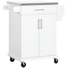Ce chariot desserte muni de nombreux espaces de rangement vous sera d'une grande utilité. Vos ustensiles et autres matériels de cuisine seront groupés en un seul endroit pour plus de praticité. Son design élégant apporte une touche d'esthétisme à la cuisine. Le déplacement est facilité par les 4 roulettes, dont 2 équipées de frein. La conception en bois et en acier inoxydable est gage de solidité.