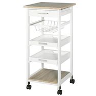 Chariot de service desserte de cuisine à roulettes panier + 2 plateaux amovibles, tiroir, étagère MDF chêne clair bois pin