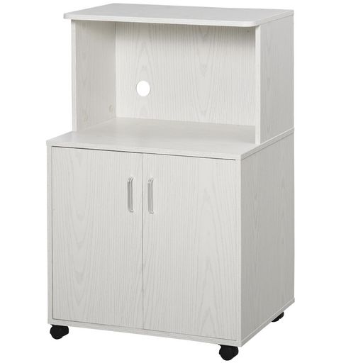 Chariot desserte micro-ondes placard 2 portes - dim. 60,4L x 40,3l x 97H cm - blanc