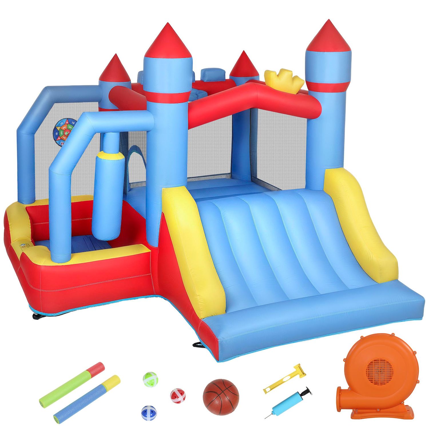 Château gonflable 5 en 1 piscine toboggan trampoline panier de basket sac de frappe