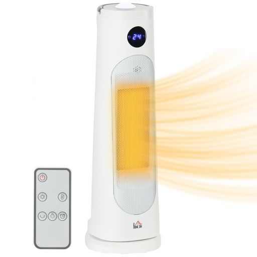 Chauffage d'appoint électrique colonne avec télécommande et timer - chauffage soufflant 1400-2000W - panneau LED - acier plastique noir blanc