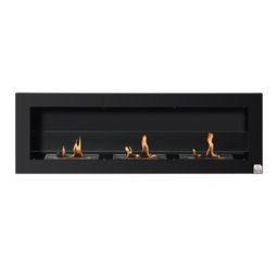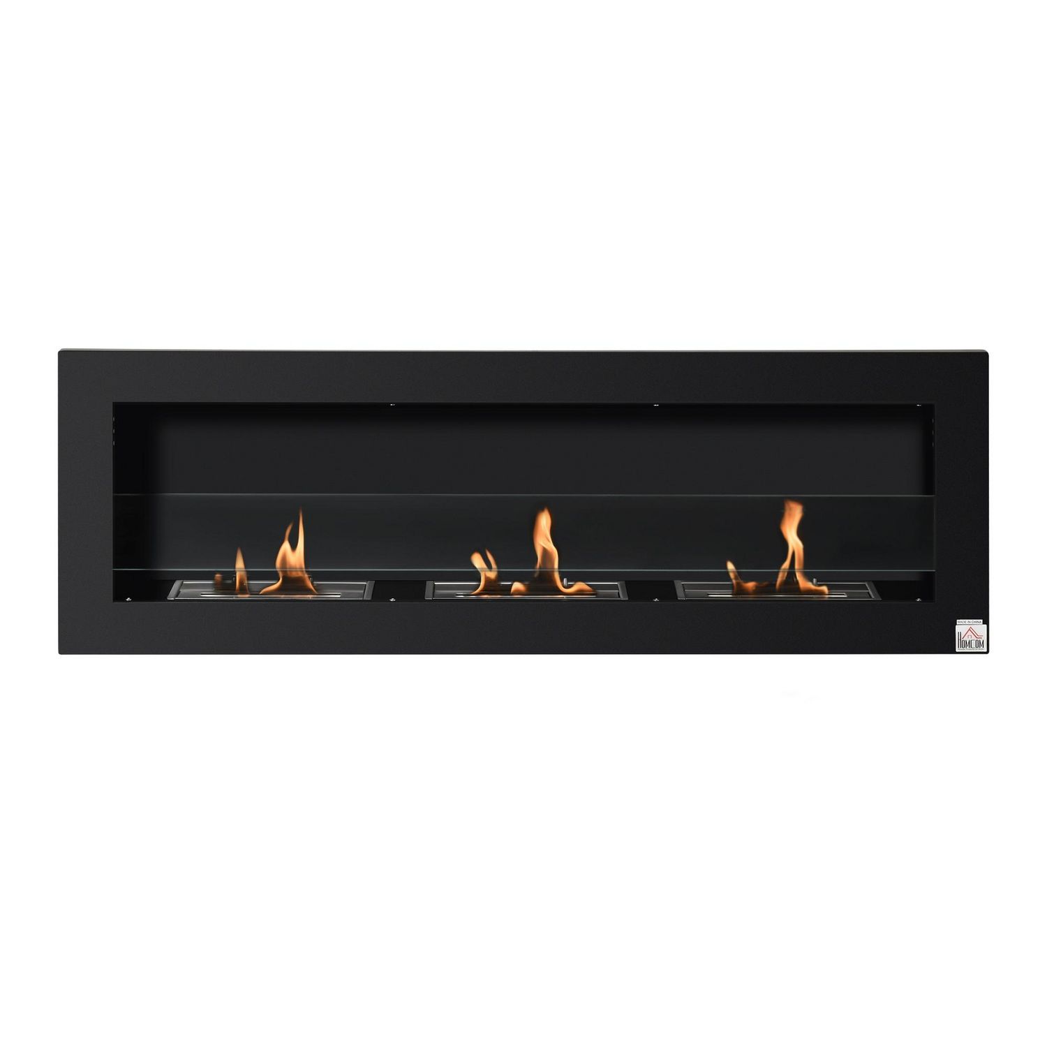 Cheminée bioéthanol murale design Bauhaus - triple brûleur 1 L - pare-feu verre trempé, kit fixation inclus - acier inox. acier dépoli noir