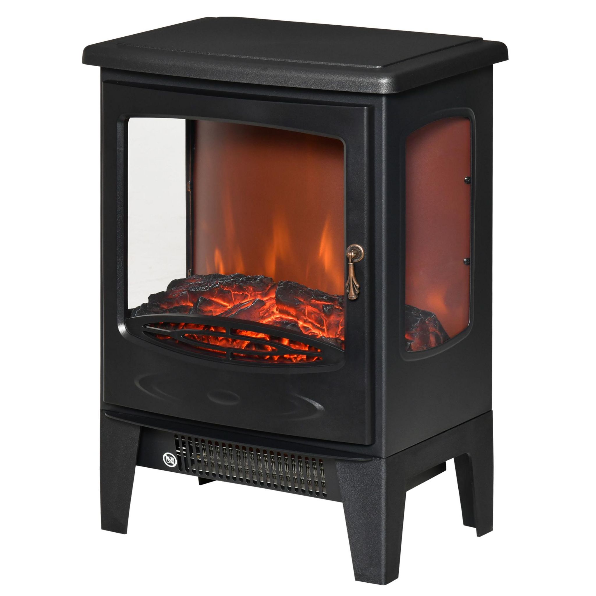 Cheminée électrique poêle style néo-rétro 1000-2000 W simulation flammes LED luminosité réglable acier ABS noir