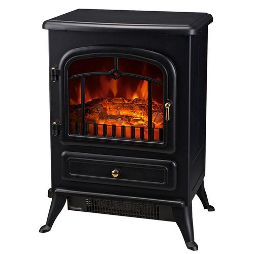 Cheminée électrique poêle style rétro thermostat 1000-2000 W noir