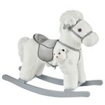Cheval à bascule - effets sonores, peluche ourson inclus - poignées structure bois peuplier gris peluche courte douce blanc