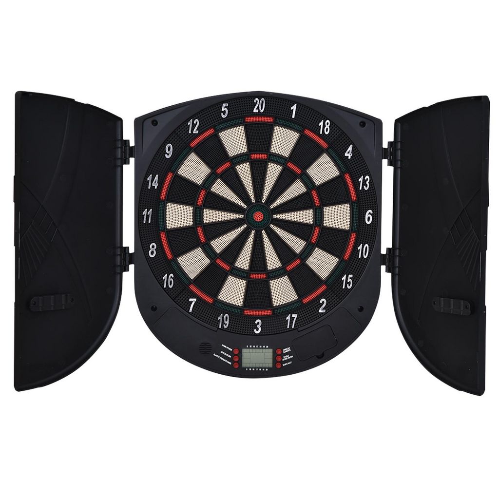 Cible jeu de fléchettes électronique refermable 26 jeux jusqu'à 8 joueurs affichage LCD haut-parleur noir