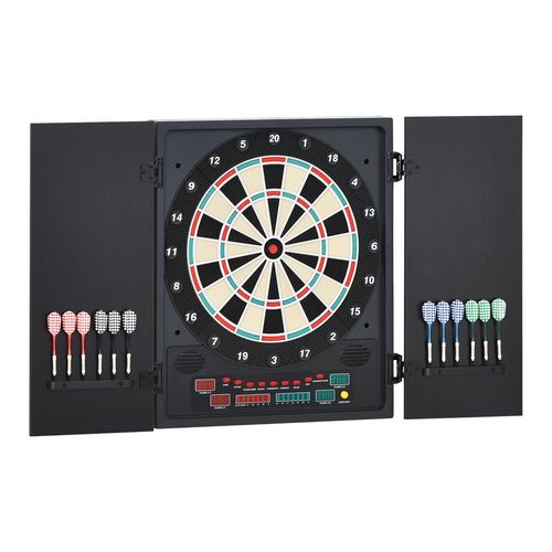 Cible jeu de fléchettes électronique refermable 27 jeux 202 variations jusqu'à 8 joueurs affichage LED haut-parleur noir