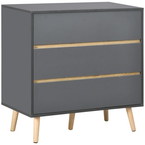 Commode 3 tiroirs design scandinave panneaux particules gris aspect bois clair