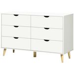 Commode 6 tiroirs design scandinave piètement effilé incliné bois pin panneaux blanc