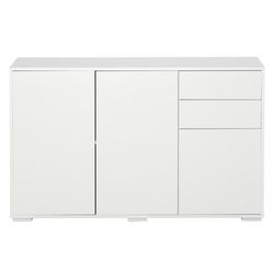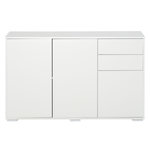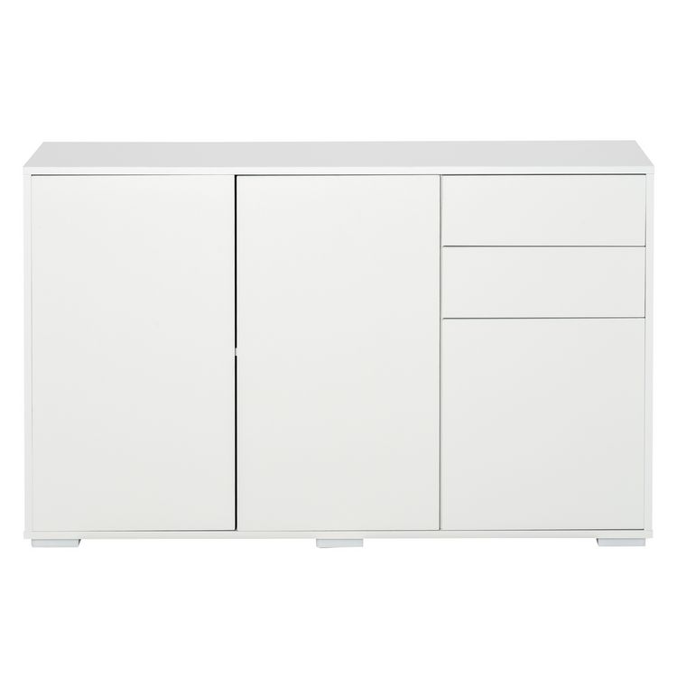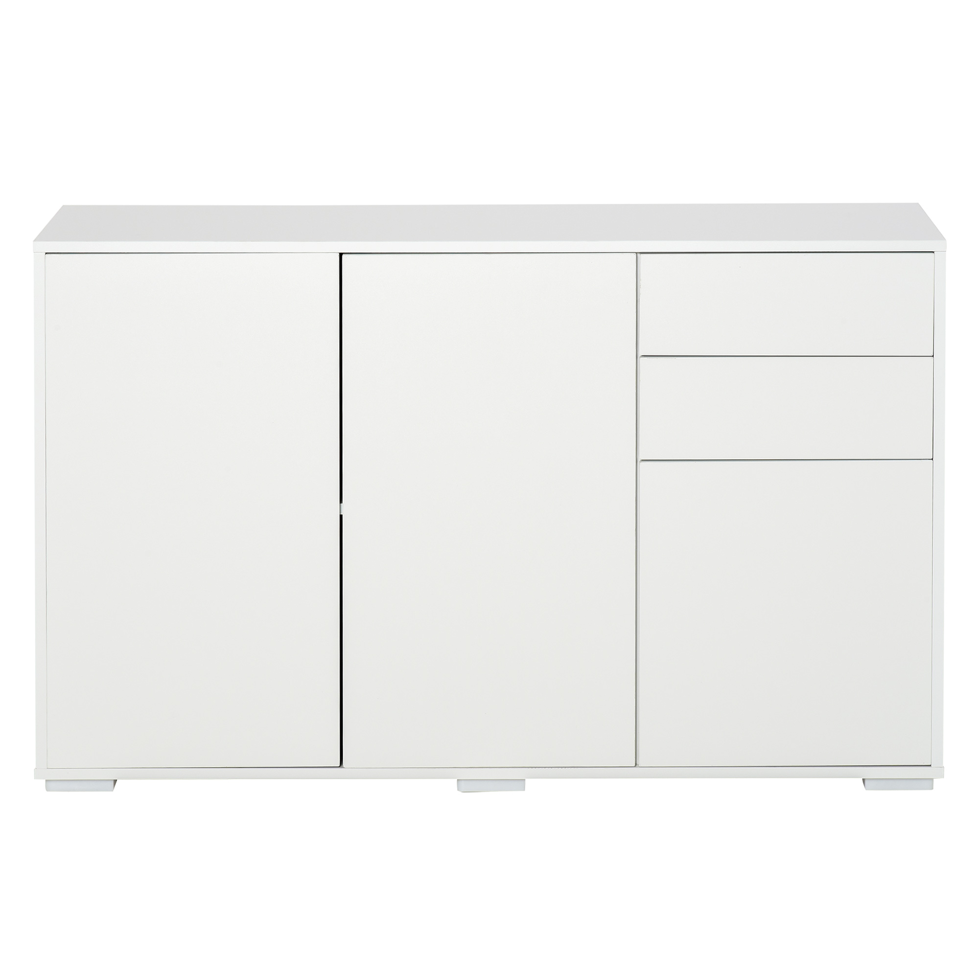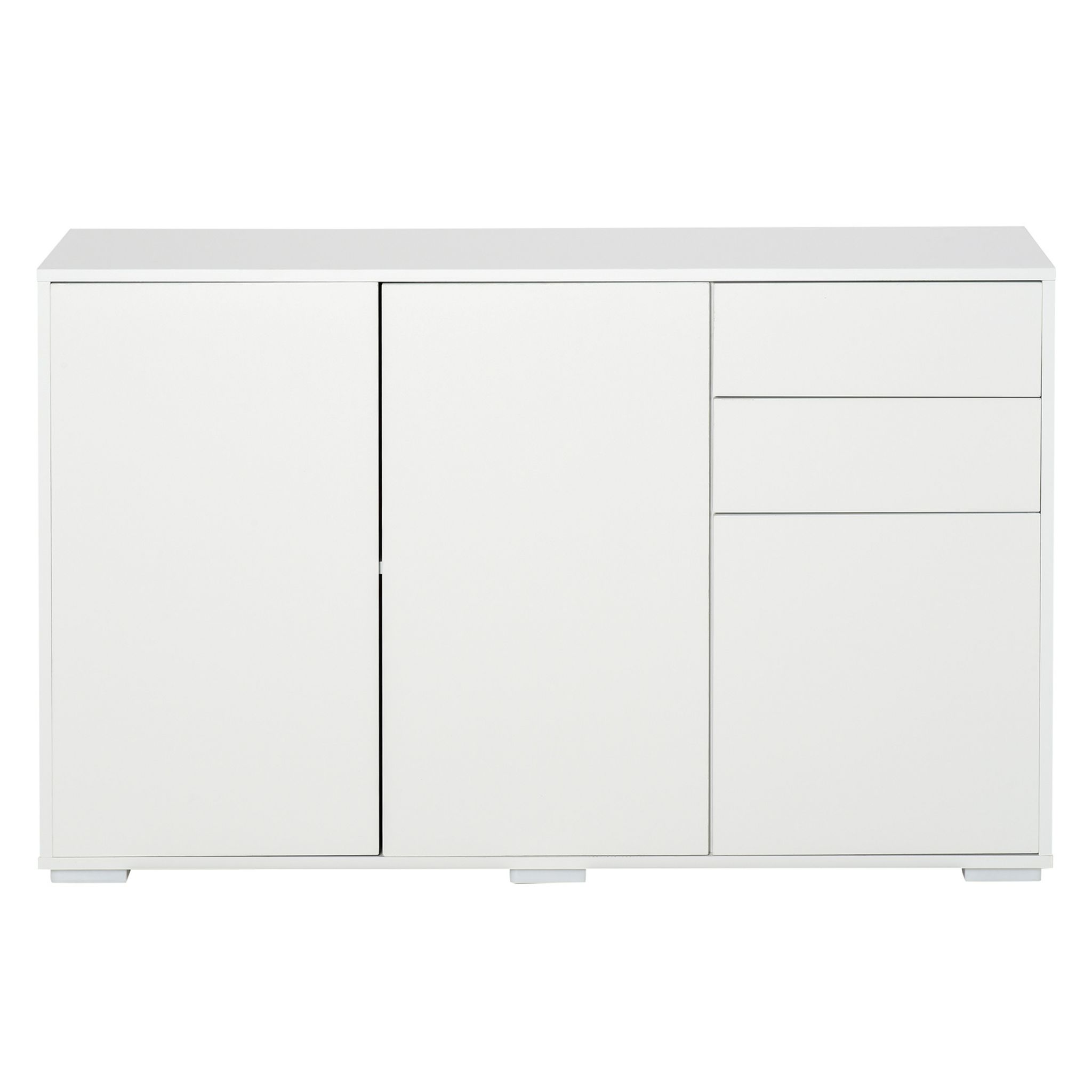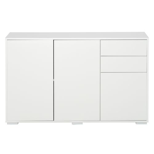 Commode buffet de rangement 2 tiroirs coulissants 3 portes étagère réglable panneaux de particules 117 x 36 x 74 cm blanc