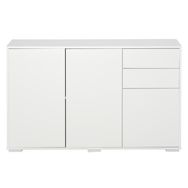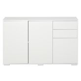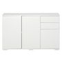 Ce meuble de rangement est à la fois pratique et élégant ! 2 tiroirs coulissants et 2 placards (un double porte, un porte simple) avec étagère réglable en hauteur vous offrent un grand espace de rangement. Son design contemporain sobre et épuré blanc laqué apportera une touche particulière à l'espac