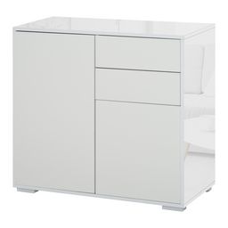 Ce meuble de rangement est à la fois pratique et élégant ! 2 tiroirs coulissants et 2 placards porte avec étagère réglable en hauteur vous offrent un grand espace de rangement. Son design contemporain épuré blanc laqué et gris imitation bois apportera une touche particulière à l'espace intérieur de