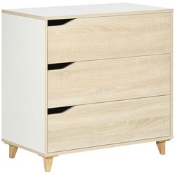 Cette jolie commode design scandinave dotée de 3 tiroirs coulissants vous permettra de ranger vos vêtements, linges de lits, accessoires ou autres. Sa structure robuste en panneaux de particules, MDF et son dispositif anti-basculement intégré vous permettront de l'utiliser au quotidien très conforta