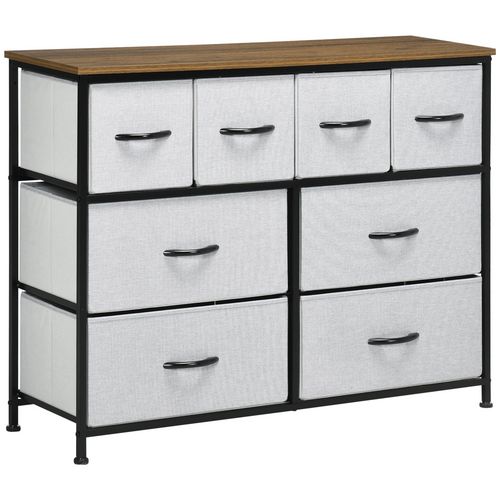 Commode meuble de rangement 8 tiroirs - dim. 100L x 30l x 78H cm - structure acier noir tissu pliant gris