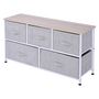 Commode meuble de rangement dim. 100L x 30l x 54H cm 5 tiroirs non-tissés gris structure métal blanc plateau MDF bois clair