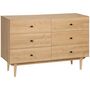 Commode vintage 6 tiroirs coulissants piètement bois de pin panneaux aspect bois de teck