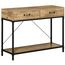 Console table d'appoint design industriel dim. 100L x 35l x 76H cm 2 tiroirs poignées laiton vieilli étagère métal noir aspect bois veinage