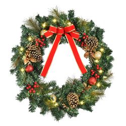 En savoir +Cette magnifique couronne de Noël est parfaite pour décorer votre maison ou votre bureau à l'approche des fêtes de fin d'année ! Composée d'une variété de baies, de feuilles, de pommes de pin et de fleurs, elle peut être fixée sur les portes, les fenêtres ou les murs, elle brillera de mille feux grâce à ses 20 lumières LED blanc chaud intégrées.