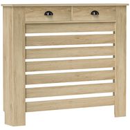 Couvercle de radiateur, cache radiateur, grille à lattes horizontales, avec 2 tiroirs, 111 x 19 x 95,5 cm, couleur aspect bois
