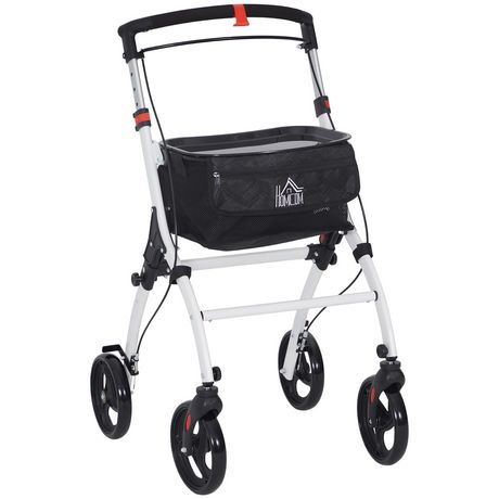 Déambulateur pliable réglable léger 4 roues rangements frein alu blanc noir