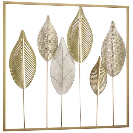 Décoration murale métal doré - Déco murale feuilles - 70 x 70 cm