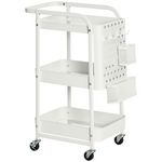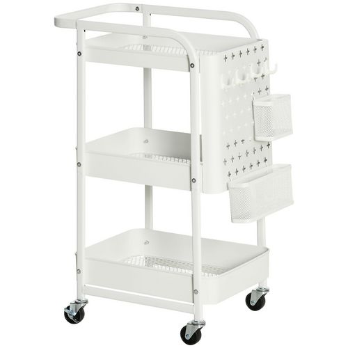 Desserte chariot de rangement en métal à roulettes 3 niveaux avec 2 range-couverts 4 crochets dim.51,5L x 32l x 75,6H cm - blanc