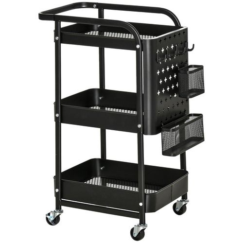 Desserte chariot de rangement en métal à roulettes 3 niveaux avec 2 range-couverts 4 crochets dim.51,5L x 32l x 75,6H cm