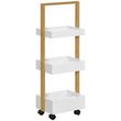 Desserte chariot de service 3 compartiments MDF blanc structure bois de bambou verni