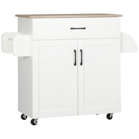 Desserte de cuisine 2 portes avec étagère tiroir coulissant porte-torchons étagère épices blanc aspect chêne clair