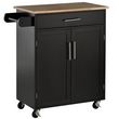 Desserte de cuisine - 2 portes, étagère, tiroir, porte-torchons - bois hévéa pin noir