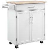 Desserte de cuisine - 2 portes, étagère, tiroir, porte-torchons - bois hévéa pin