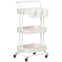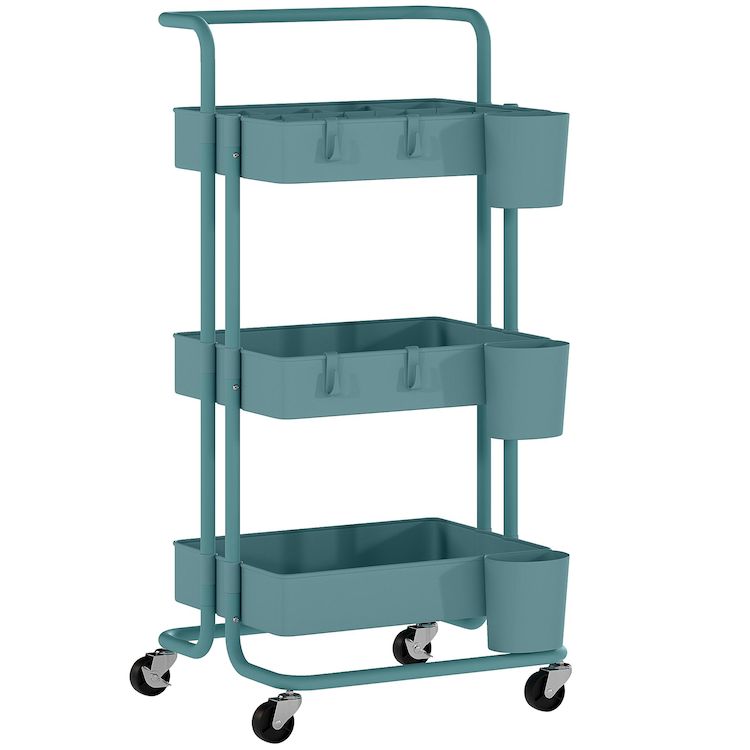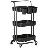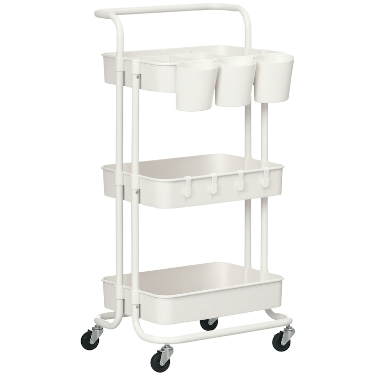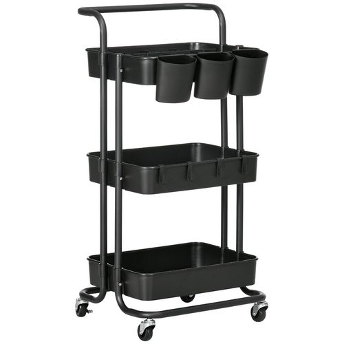 En savoir +Ce superbe chariot de service à roulettes multi-rangement vous facilitera grandement la vie ! Équipé de 3 étagères avec rebord, 3 pots suspendus et 4 crochets, vous pourrez ranger vos fruits, légumes et bien d'autres encore. Quoi de plus pratique ?