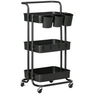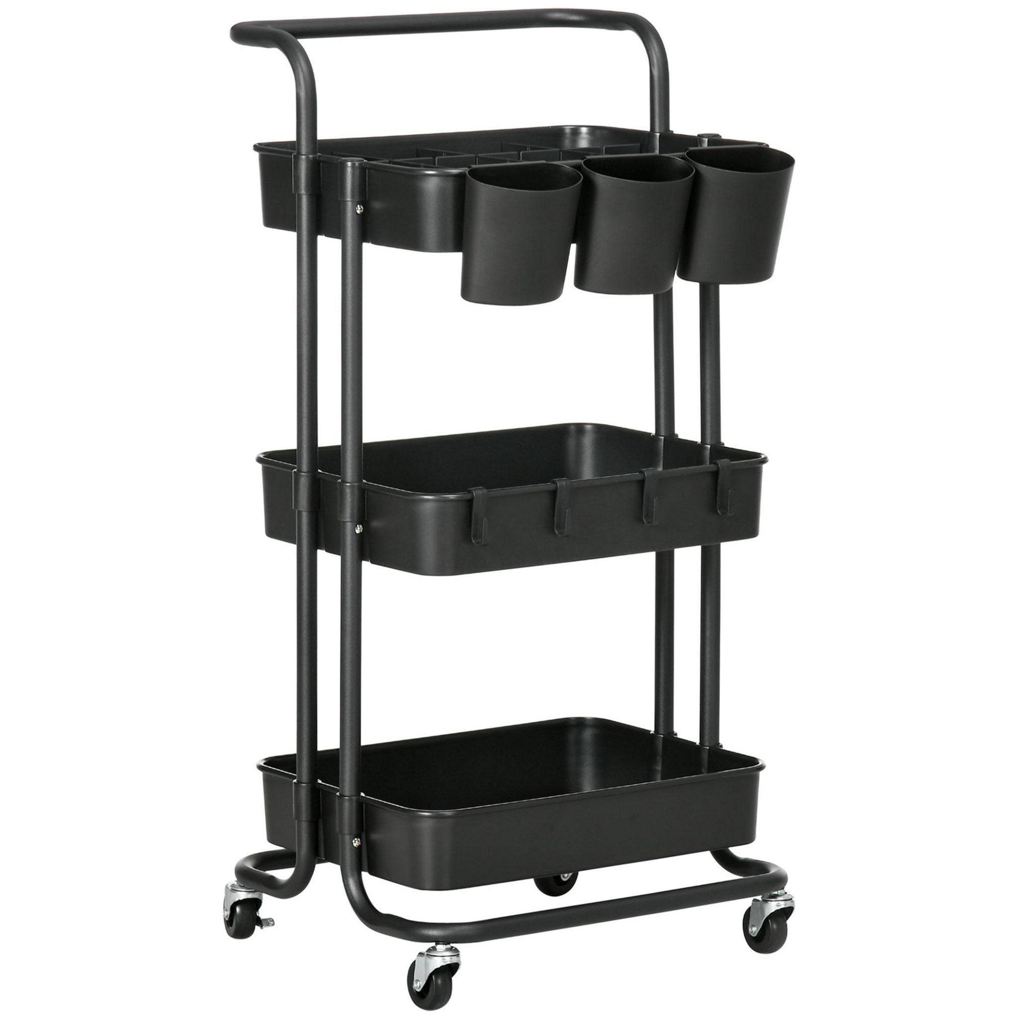 Desserte de cuisine - 3 étagères avec rebords - 4 crochets, 3 pots suspendus - acier ABS
