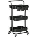 Desserte de cuisine - 3 étagères avec rebords - 4 crochets, 3 pots suspendus - acier ABS noir