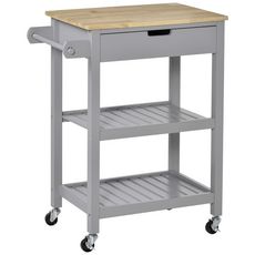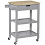 Desserte de cuisine à roulettes - chariot de service - tiroir, 2 étagères - plateau bois hévéa MDF gris