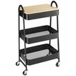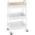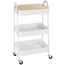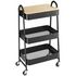 Cette desserte de rangement à roulettes est compacte, idéale pour les petits espaces et se déplace très facilement d'une pièce à l'autre. Avec ses 3 plateaux, elle permet de garder à portée de main ustensiles, plats et autres accessoires sans encombrer votre table ou plan de travail. Ce chariot de cuisine deviendra un meuble d'appoint idéal et indispensable dans votre quotidien. Le plateau supérieur en MDF amovible transforme le chariot en un plan de travail.