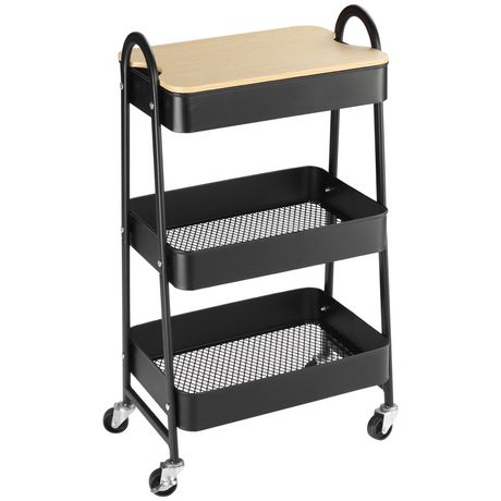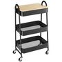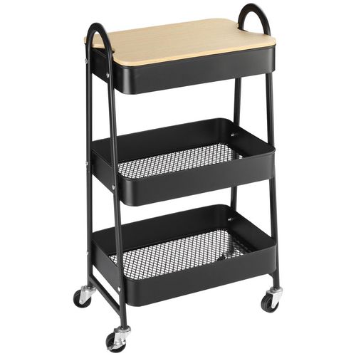 Desserte de cuisine chariot de service design industriel 3 étagères plateau amovible aspect bois clair acier noir