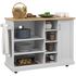 Desserte de cuisine îlot multi-rangement MDF blanc plateau bois hévéa verni