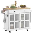 - Desserte à roulettes de cuisine comprend un tiroir et 2 armoires avec portes encadrées en verre trempé pour de nombreuses options de rangement