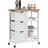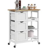 Desserte de cuisine multi-rangement - 3 tiroirs, 2 étagères, plateau amovible - MDF blanc bois hévéa