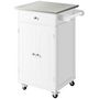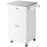 Desserte de cuisine multi-rangements 1 tiroir placard 2 portes avec étagère porte-torchons MDF acier inox.