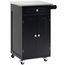 Desserte de cuisine multi-rangements 1 tiroir placard 2 portes avec étagère porte-torchons MDF noir acier inox.