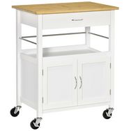 Desserte de cuisine multi-rangements - dim. 73L x 50l x 91H cm - poignées métal MDF blanc plateau bois bambou verni