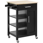 Desserte de cuisine style contemporain - porte, tiroir, 3 étagères - poignées métal MDF noir plateau bois hévéa
