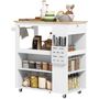 En savoir +Rehaussez votre cuisine avec la desserte îlot HOMCOM, parfait pour le rangement et pouvant servir de support à micro-ondes ou de chariot à café. Facile à déplacer grâce à ses roulettes fluides, il intègre un porte-couteaux et un porte-serviette, rendant votre espace organisé et élégant.